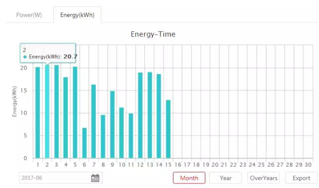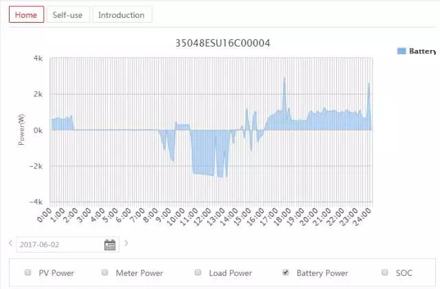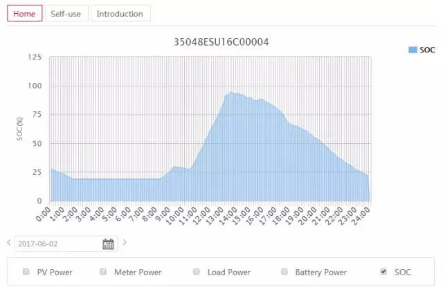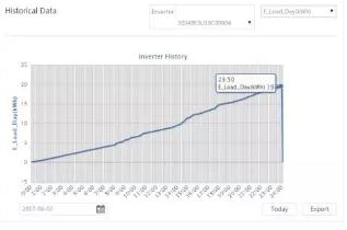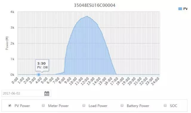 此次电站是在2017年5月份安装,正值南半球的秋冬季节,通过固德威监控网站可以获得电站运行的全部有效信息,以其中某一天为例: