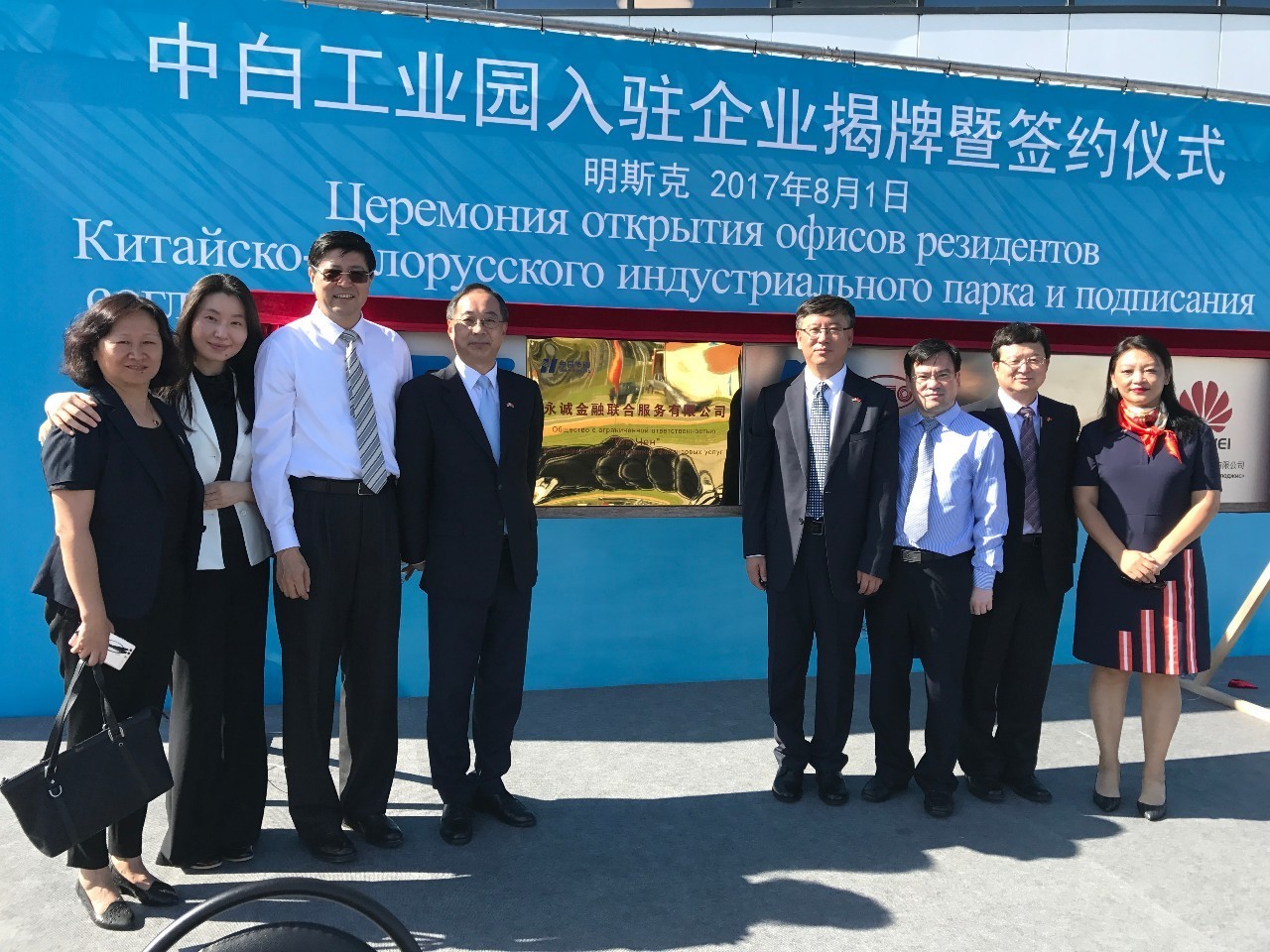 白俄罗斯明斯克时间8月1日,华能永诚保险公司旗下的永诚金融服务有限公司在中白工业园正式揭牌。国务院国资委主任肖亚庆、副主任黄丹华,白俄罗斯经济部副部长乌秋平,中国华能集团公司董事长、党组书记曹培玺出席揭牌仪式。