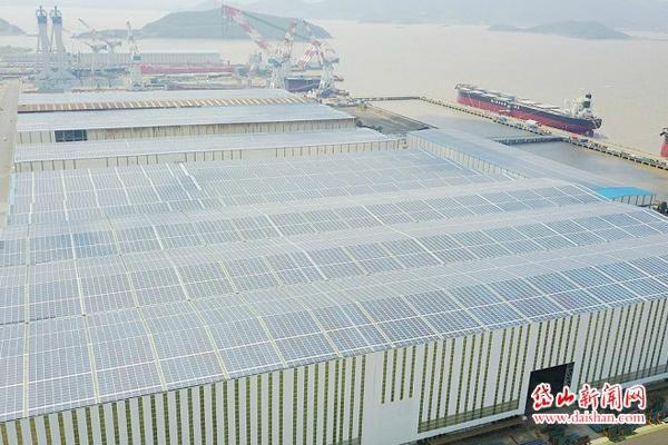 踏上132级台阶,登上六层高的常石集团(舟山)造船有限公司生产厂房的屋顶,原本普通的彩钢瓦屋顶不见踪影,焕然一新的是覆盖整个屋顶的一大片蓝色多晶硅太阳能光伏面板,与屋顶上方的蓝天交相辉映,阳光下显得格外醒目。