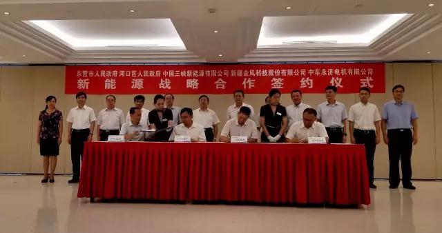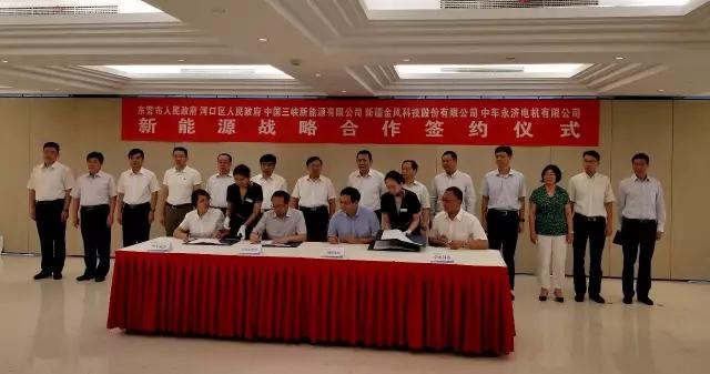 7月31日,东营市人民政府、河口区人民政府与中国三峡新能源有限公司(下称“三峡新能源”)、新疆金风科技股份有限公司(下称“金风科技”)、中车永济电机有限公司(下称“中车永济”)新能源战略合作签约仪式在京举行。金风科技总裁王海波、执行副总裁吴凯同与会代表进行了深入交流,并代表金风科技与三峡新能源、中车永济、东营市政府、河口区政府签署了四方战略合作协议。