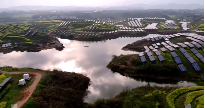 这一排排光伏列阵与灿烂的油菜花交相辉映,透露着勃勃生机,好像仙人不小心打翻了颜料桶,将金色洒落至人间,给大地铺上了一条条华贵的地毯。这里的油菜花,每一朵都有它的姿态;这里的光伏板,每一块都有它的生命。