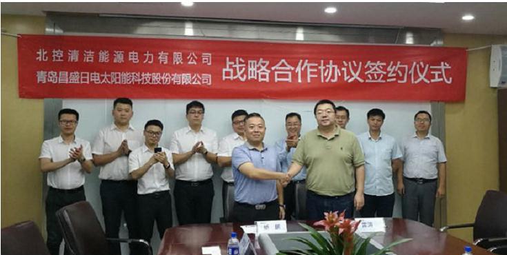 7月18日下午,青岛昌盛日电太阳能科技股份有限公司与北控清洁能源电力有限公司签署全面战略合作协议。