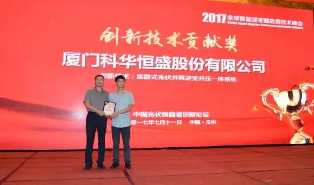 科华恒盛荣获2017全球智能逆变器应用技术峰会创新技术贡献奖