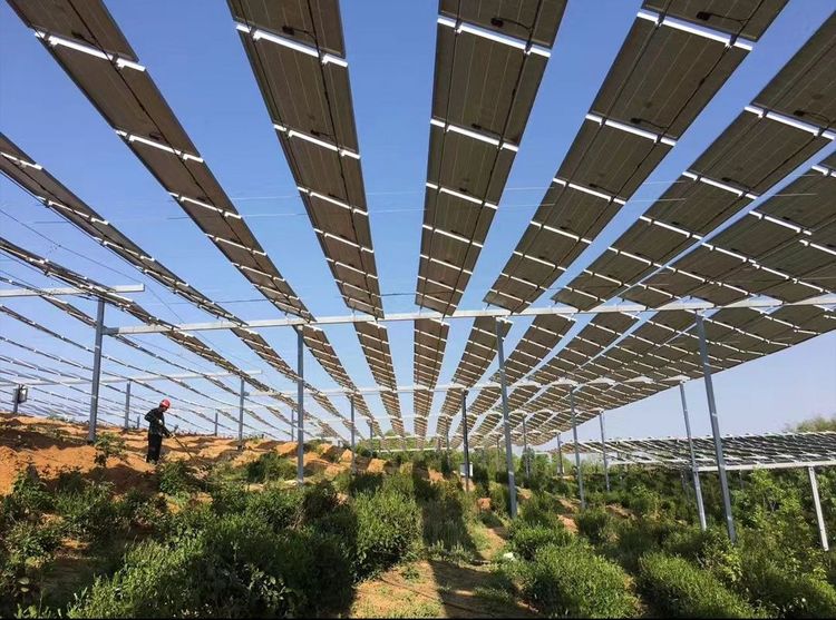 浙江国利英核能源有限公司全球首创柔性光伏支架,采用创新的安装方式,充分使土地二次利用,实现景观性与实用性的完美结合。与传统支架相比,在同等高度下,至少可节约成本0.1元/瓦,土建施工周期缩短1/3,23亩即可建1MWp且最大程度上减少对土地的破坏。