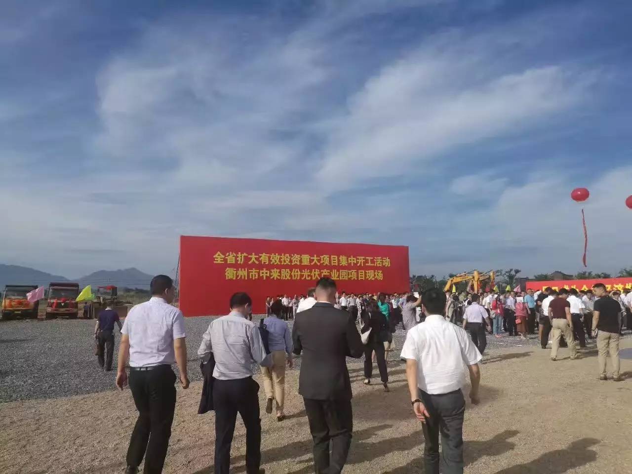 2017年7月10日,浙江省扩大有效投资重大项目集中开工活动在全省11个市同时举行。由苏州中来光伏新材股份有限公司(以下简称“中来股份”)投资的中来衢州光伏产业园项目作为衢州分会场重大项目正式开工建设!该项目建成后将成为全球最大10GW IBC双面太阳能电池项目。