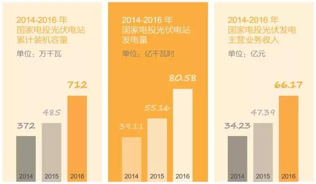 这份报告全面介绍了过去一年国家电投社会责任的履行情况,并从经济绩效、环境绩效、社会绩效等3个方面,披露了国家电投29项关键绩效指标2014年-2016年的数据。与该报告同时出炉的,还有《核电产业可持续发展报告》、《光伏产业可持续发展报告》两份报告。小编选取报告关键数据,分享如下: