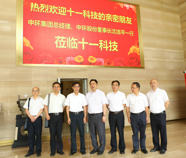7月4日上午,中环电子集团总经理、中环股份董事长沈浩平,中环股份总经理秦玉茂赴十一科技考察调研,中环股份助理总经理江云、四川晟天新能源发展有限公司总经理李树成陪同。沈浩平董事长一行受到十一科技董事长赵振元亲切接见。