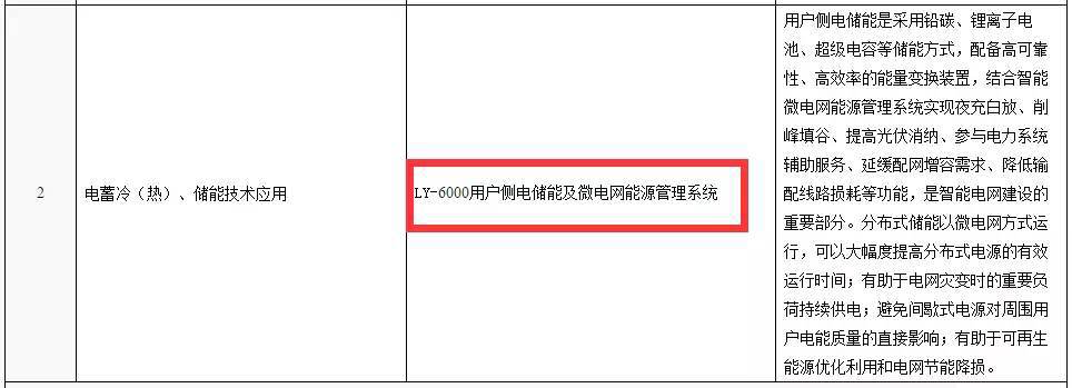 LY-6000用户侧电储能及微电网能源管理系统入围移峰填谷类目录。