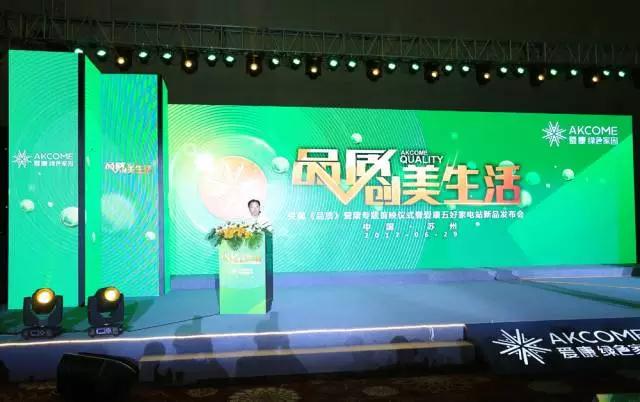 2017年6月29日,央视《品质》爱康专题首映仪式暨爱康五好家电站新品发布会在苏州金鸡湖凯宾斯基大酒店隆重召开,邀请政府领导、行业嘉宾以及经销商等300余人共同见证大会盛况。本次大会以“品质创美生活”为主题,旨在以爱康五好家电站定义家用太阳能发电系统的品质标准,开启家用太阳能发电市场新秩序,让千万家庭乐享绿色美好生活。