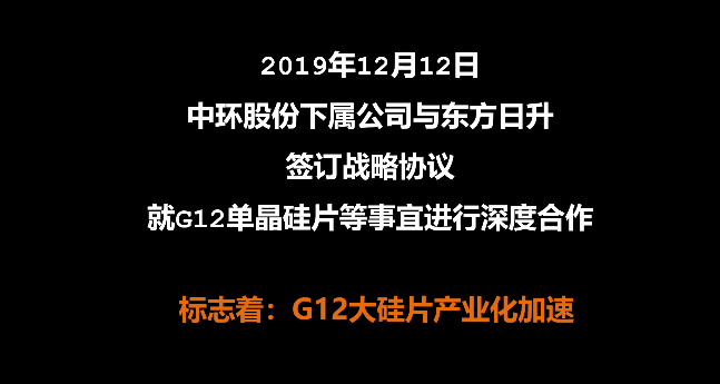 中环股份于2019年8月16日首次发布G12单晶硅片后,爱旭、通威、东方日升、天合光能等下游电池、组件及相关配套环节都开启了基于G12单晶硅片的协同创新,并且成绩显著。通过产业链上下游伙伴的共同努力,G12在降本和功率提升方面的效果都达到甚至超越预期。