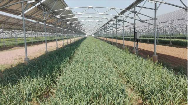 6月8日,在邢台任县,种植在光伏电站的75亩大蒜喜获丰收,初步测产大蒜亩产1700斤/亩(折合干蒜)。该批大蒜在2016年10月栽植在光伏电站组件区域,利用了组件下和组件间的空间,实现板上发电,板下种植,提高了土地利用效率和综合收益。