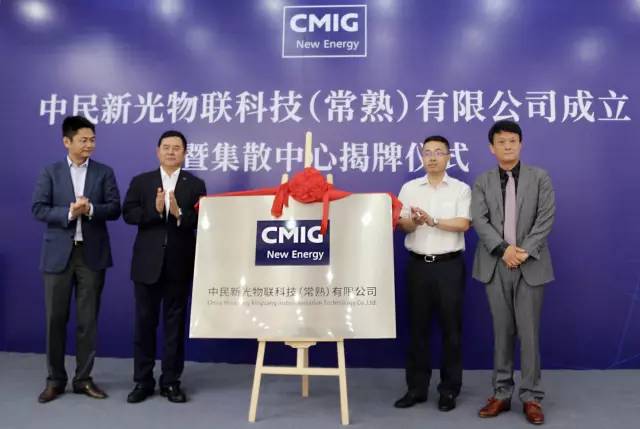 2017年6月9日,中民新光物联科技(常熟)有限公司(简称“新光物联”)暨集散中心揭牌仪式在常熟市莘庄镇隆重举行。常熟市莘庄镇党委书记芮卫国、常熟市辛庄镇党委副书记龚强、中民新能投资集团副总裁马少寅,中民新光常务副总裁包育栋、阿特斯阳光电力集团有限公司高级副总裁庄岩等多位领导、嘉宾出席此次揭牌仪式。