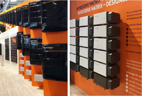 储能馆一号展位是Solarwatt,继去年推出了2.2-8.8kWh户用储能系统Myreserve系列,今年又隆重推出商用储能系统Myreserve Matrix。该款产品一举荣获2017Intersolar 储能奖,可无限扩容,最大放电深度达100%,转换效率99.2%, 组合方便, 10年质保。