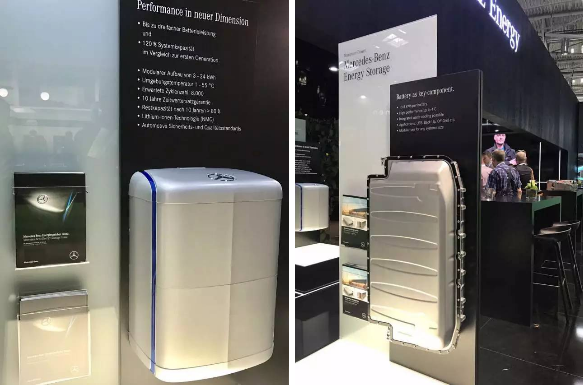 梅赛德斯奔驰能源今年一反常态,以储能专家的口号亮相intersolar。展位同时展示户用及商用两种电池模组。户用电池模组电压范围42-58V 容量2.8-22.4kWh,80%DOD(8000/0.5C),10年质保。工业型电池模组单体13.8kWh,功率45kW,额定电压365V,标准设计扩展容量范围100kWh-100MWh。