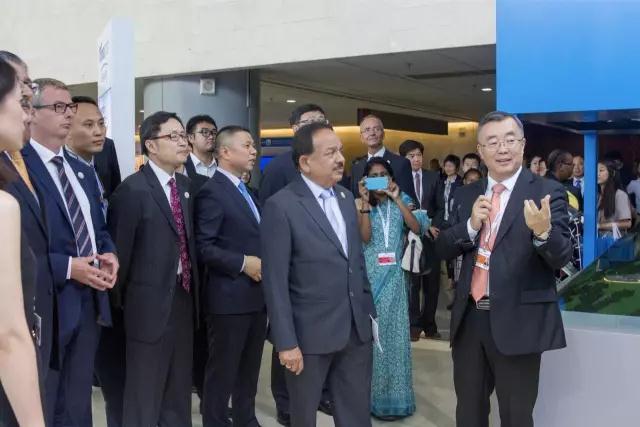 前来参加峰会的各国部长及代表团6日下午到天合光能展台参观,董事长兼首席执行官高纪凡陪同,首席品牌官杨晓忠做现场介绍。