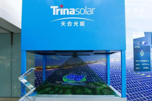 本次天合展台以“用太阳能造福全人类”的公司使命为展厅主线,通过公司历史发展脉络讲述天合的光伏情怀;通过全息沙盘、远程运维监控平台、智能光伏小屋和太阳能赛车模型等实物,展现公司当前领先的技术水平;通过对世界能源结构的具体分析展望未来以太阳能为代表的清洁能源的巨大影响力。