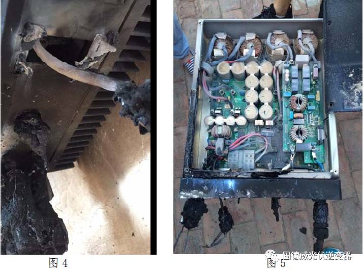 根据固德威售后工程师查看事故现场,调查取证,完整还原了起火原因: