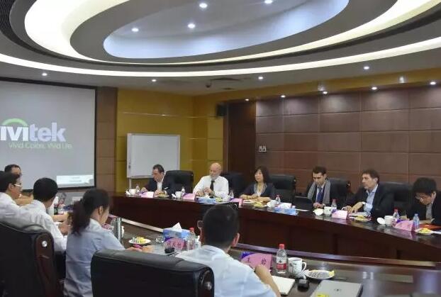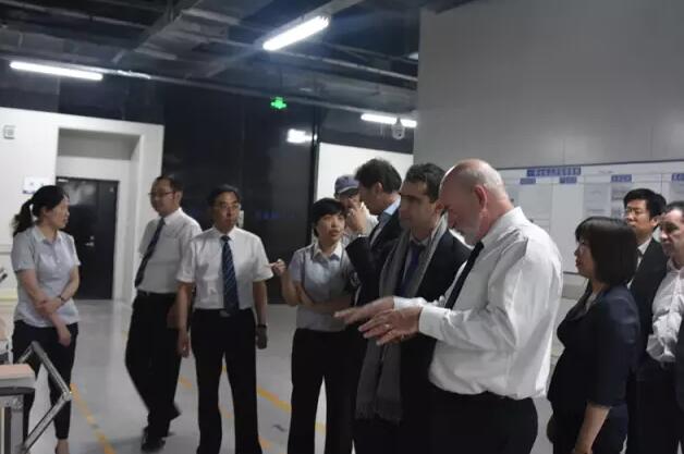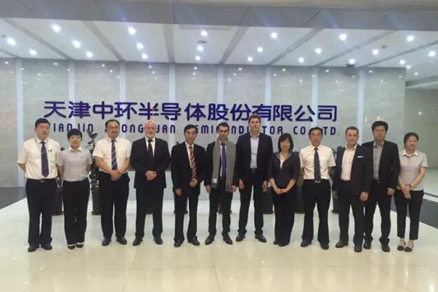 朱利安•普热(Julien Pouget)一行参观了中环股份DW车间,相关领导就公司生产现状以及DW切割硅片、高效太阳能单晶硅片等国际领先产品的技术优势和生产工艺做相关介绍,并对中环股份“全国化产业布局和全球化商业布局”的战略进行详细介绍。