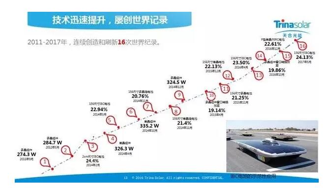 天合光能首席科学家Pierre Verlinden博士对这一产品的市场应用前景十分看好。他认为,高转换效率IBC电池不但可降低光伏系统的LCOE,在太阳能汽车、太阳能飞机等特殊领域都有着广泛的应用前景。随着新能源交通革命的兴起和不断发展,高效太阳电池必将会走进千家万户,成为普通老百姓看得见,摸得着,用得起的产品。