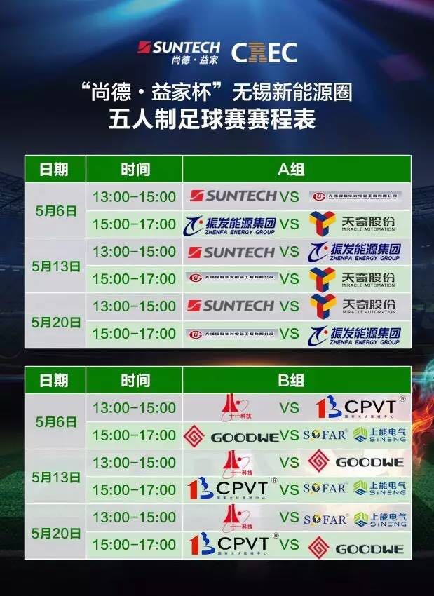 为增加会员互动,增强同仁体魄,由无锡新能源商会主办、无锡尚德太阳能电力有限公司独家冠名的“尚德·益家杯”第二届无锡新能源圈五人制足球赛揭幕赛即将于5月6日(本周六)在无锡新体中心正式打响。