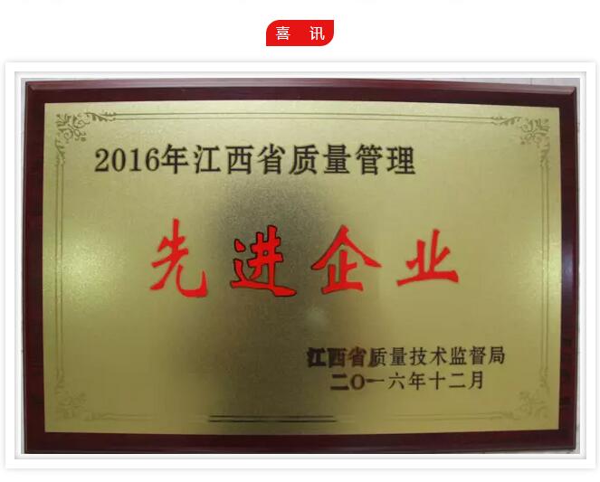 瑞晶公司荣获“2016年江西省质量管理先进企业”荣誉称号