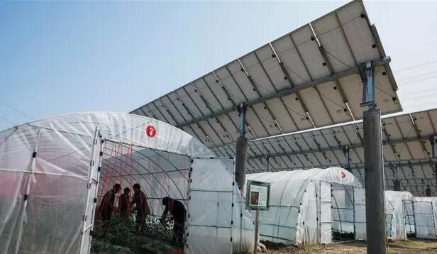 目前,光伏板下层建有20多个蔬菜、水果大棚,120亩油用牡丹,并计划逐步扩大农作物种植面积。除土地流转租金外,当地约100名农民以承包、务工的形式实现就业增收。