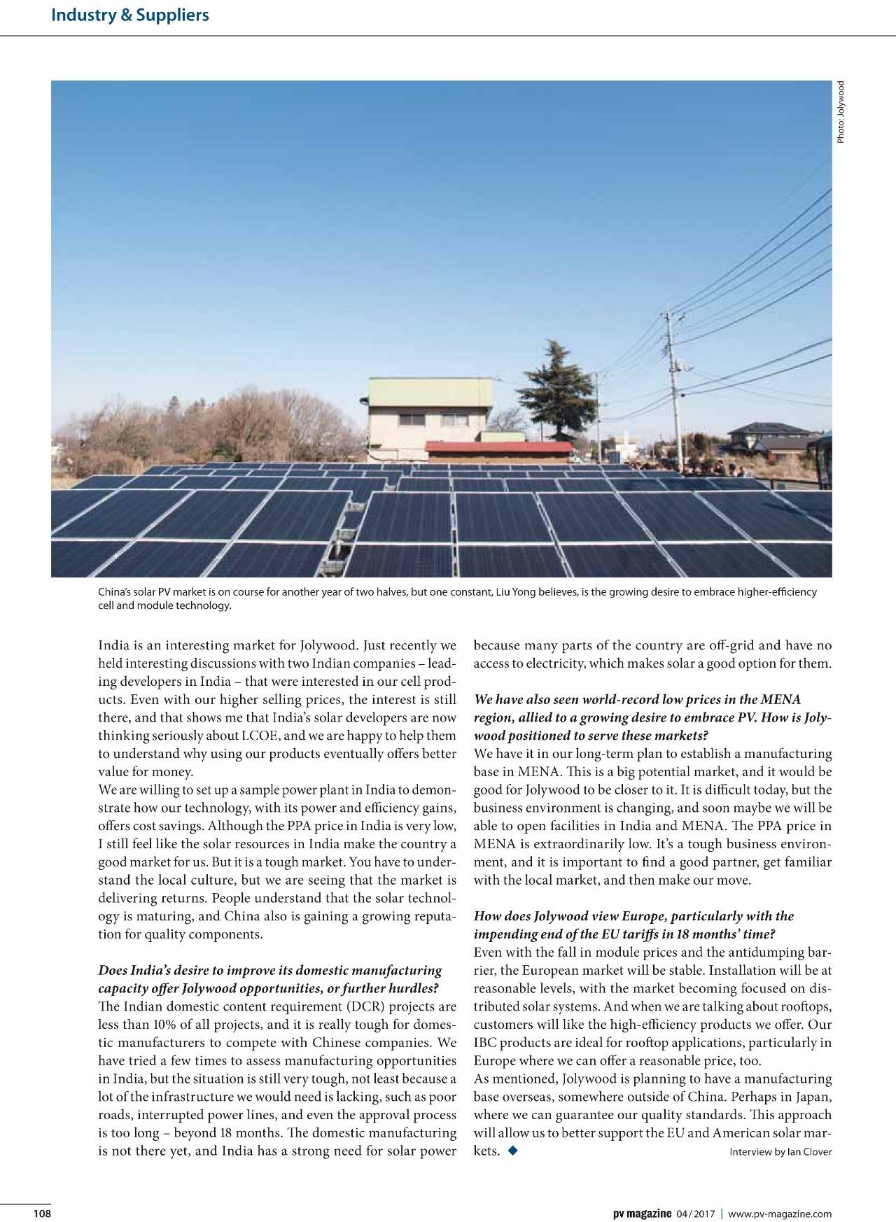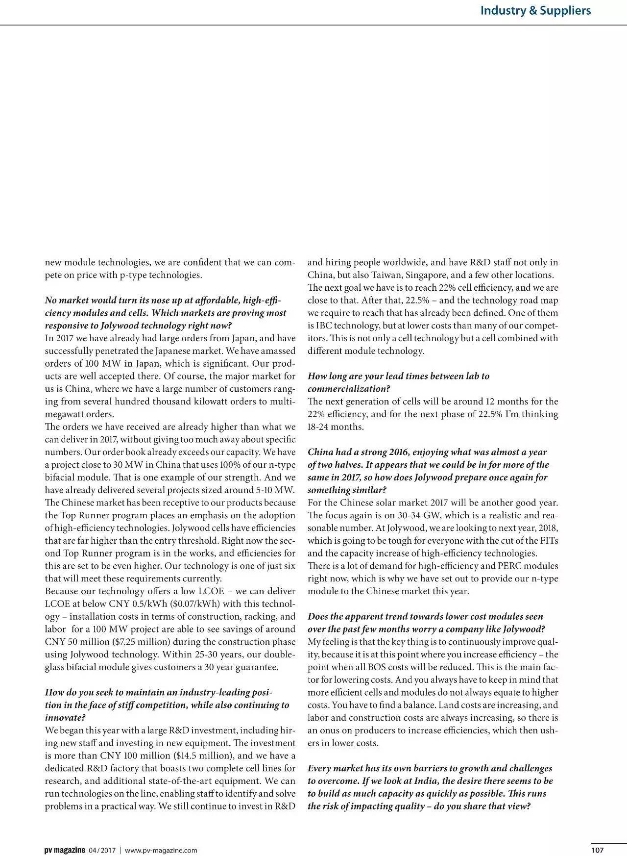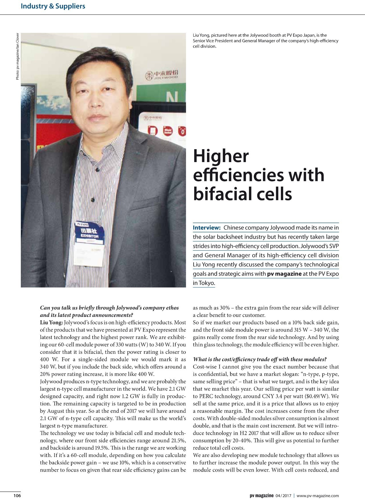 PV Magazine专访中来光电总经理刘勇:双面电池更高效