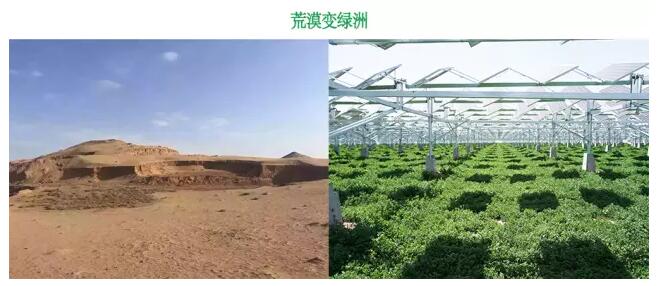 中国西部地区有着非常丰富的太阳能资源,但同时,那也是中国受风沙侵袭最严重的地区,土地的沙漠化、戈壁化面积巨大。同景在成功实践推广农光互补模式的同时,也积极探索光伏发电与沙漠治理结合的“光伏治沙”模式。“向上”收集转化了金色的阳光,“向下”收获了绿色效益,勾画出了一条现代工业与生态文明融合发展的路线,实现经济效益和生态效益共赢。未来,同景将通过技术的不断创新积累,提高光能转化效率,降低光能使用成本,不断续写“夸父逐日”的新神话,在苍茫大漠间构筑中国的“太阳城”,为普照全球的阳光赋予特殊的意义。