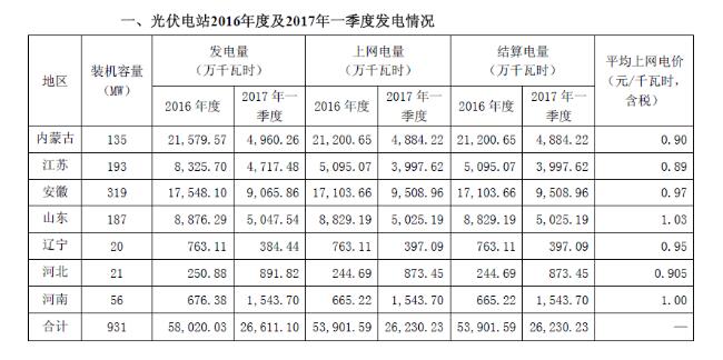 值得注意的是,其中大部分电站地处东部、中部用电大省,有效避免弃光限电,确保电站的高收益。2016年度公司项目发电量近6亿度,同比2015年近2亿度发电量增长200%。截至2017年3月,各区域所有项目总共发电达104259.07万千瓦时,并且迄今没有发生任何安全事故。在专业运维团队的管理下,各光伏电站都能保证高效、稳定地运行发电。