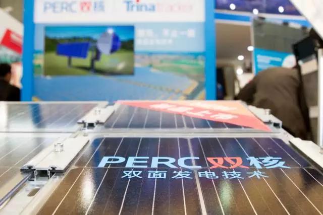 今日展示的PERC双核组件为天合光能3月全球首发的双面发电组件。产品融合了天合光能高效单晶PERC双面发电技术和成熟的双玻技术,具有高发电量,低度电成本,应用环境广泛等特点。该组件正面吸收太阳的直射光发电,背面接收来自地面的反射光和空气中的散射光发电,与传统单面组件相比,发电量最高可提升达25%。另一方面,搭配高可靠跟踪系统Trinatracker,将传统固定方式的系统发电量提升了10%-15%。正可谓强强联合,谁与争锋。
