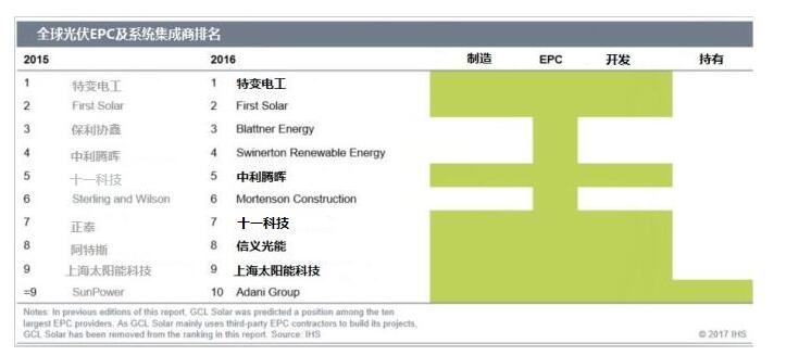 特变电工蝉联由市场调查机构IHS 发布的2016年全球EPC厂商排名冠军,如此巨大的安装量主要来源于2016年上半年中国市场的强劲需求。