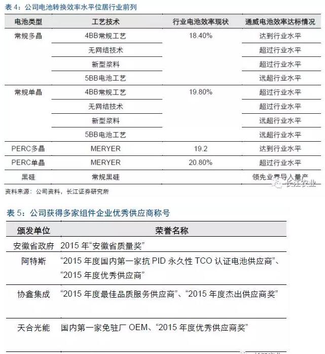公司作为国内电池龙头企业,在产销规模扩张的同时,注重核心技术研发,每年研发投入占销售收入比重均超过3%,转换效率水平及新技术引进方面均位居行业前列,产品下游主要组件企业认可度高,多次获得优秀供应商称号。