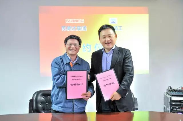 国机精工总经理朱峰与国机苏美达集团总经理蔡济波签约合影