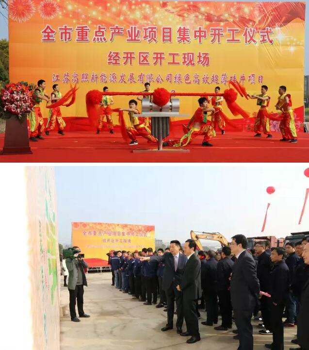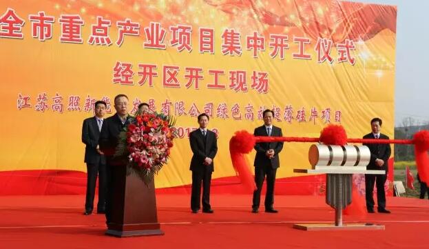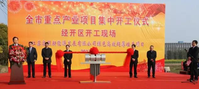 人勤春来早,实干正当时,2017年3月21日,环太集团隆重举行高照新能源发展“2GW绿色高效超薄硅片项目”开工仪式。扬中市委、市政府四套班子领导、各镇街区主要领导、分管领导、市有关部门主要领导、分管领导、企业负责人及职工代表参加开工现场活动。