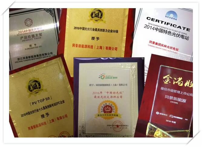 同景新能源已获授权太阳能领域自主专利50余项,涉外专利3项(含美国、印度、澳大利亚专利,其中PCT申请1项覆盖全球)。研发团队可根据客户的要求提供完整可靠的解决方案,并提供太阳能跟踪电站系统设计、阴影分析、能源管理及施工安装等诸多配套服务。同景单轴及双轴跟踪系统技术累计应用已达到1GWp以上,项目应用遍及浙江、安徽、内蒙古、宁夏、湖北、江西、新疆、山东、山西、广东等地区。并相继荣获了“2014年中国特色光伏电站”、“2014年中国光伏电站产品价值大奖”、“2015年度社会责任企业典范”、“2016中国光伏行业十大最具创新电站EPC企业”、“2016中国好光伏最佳光伏支架供应商”和“2016年度金港股-最佳市值管理上市公司”等多项殊荣。一路走来虽历经诸多困难,但同景的灿烂之花依然笑对明天的太阳。