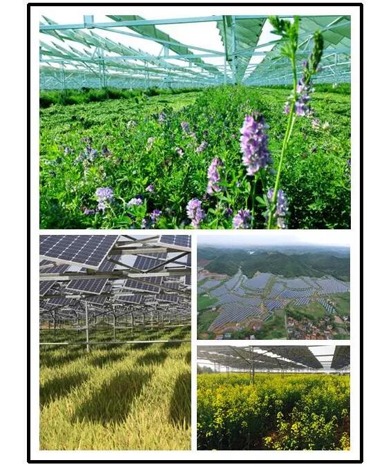 太阳能组件支架陈列采用百叶窗敞开式框架结构设计,利用跟踪支架系统架空2米以上。配重式跟踪支架系统的运用,不需要挖掘和水泥浇筑,不建固定建筑,不破坏耕作层,不改变农用地性质,不影响大型农机作业,提升土地的产出效益,实现“光扶农、光促农、光富农”。