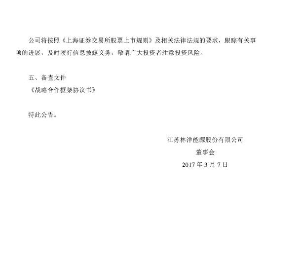 江苏林洋能源股份有限公司 关于签订战略合作框架协议的公告