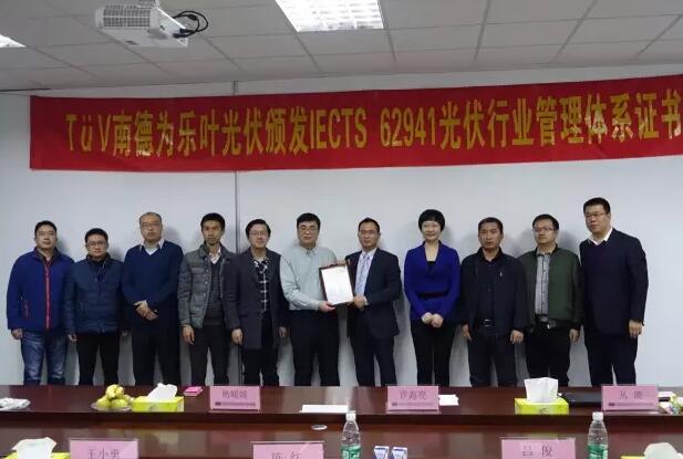 乐叶光伏荣获TÜV 南德IEC TS 62941光伏行业管理体系证书