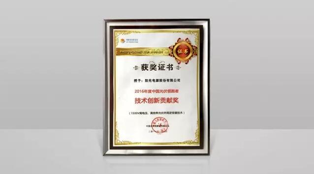 阳光电源荣膺2016年中国光伏领跑者技术创新贡献奖