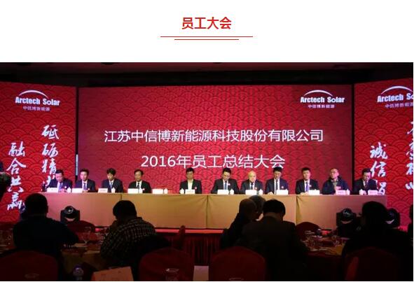 员工总结大会上,公司董事长蔡浩先生就公司2016年作出了总结性报告,蔡总表示,过去的一年对中信博来说具有历史里程碑的意义,公司整体由有限公司改制为股份公司,确立了在国内主板的上市战略,同时公司销售业绩继续保持30%的增长。蔡总强调,公司取得的巨大成绩离不开全体员工的同心协力、无私奉献,为此公司隆重举办颁奖典礼,特设各奖项包括:优秀员工奖、劳动模范奖、先进个人奖、技术标兵奖、创业成长奖、最佳服务奖、技术革新奖、最佳协作奖、金牌黄牛奖、团队奖及优秀供应商奖。