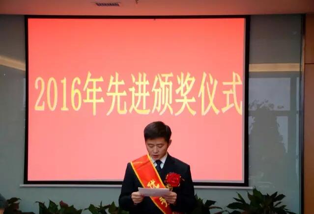 在表彰大会上王忠总宣读了《关于对2016年度的先进表彰的决定》文件,任斌、毛志炜、杨霞飞等6名同志荣获2016年度先进工作者,孙宁总及所带团队中富新商分别荣获了劳动模范和先进团队,侯卫东总荣获了突出贡献奖。