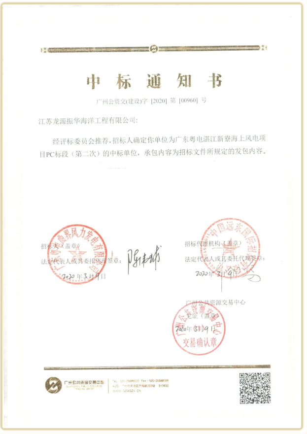 龙源振华“喜中”广东粤电湛江新寮海上风电项目PC标段项目