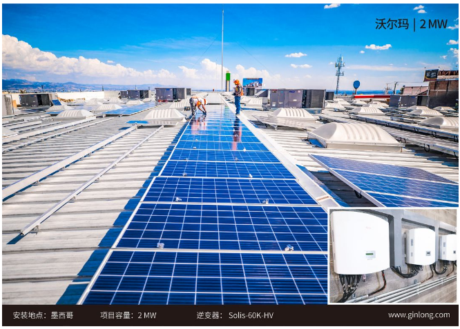 目前Solis-60K-HV逆变器已经在墨西哥沃尔玛商超得以应用,Solis在墨西哥八家沃尔玛店的屋顶安装光伏阵列(地点分别是:阿瓜斯卡连特斯,瓜纳华托州里昂,普埃布拉比诺, 瓜纳华托州萨拉曼卡)总装机容量约4MW。预估这些光伏安装项目年总发电量将达586 万kWh,每个光伏电站完全满足各分店白天的电力需求。