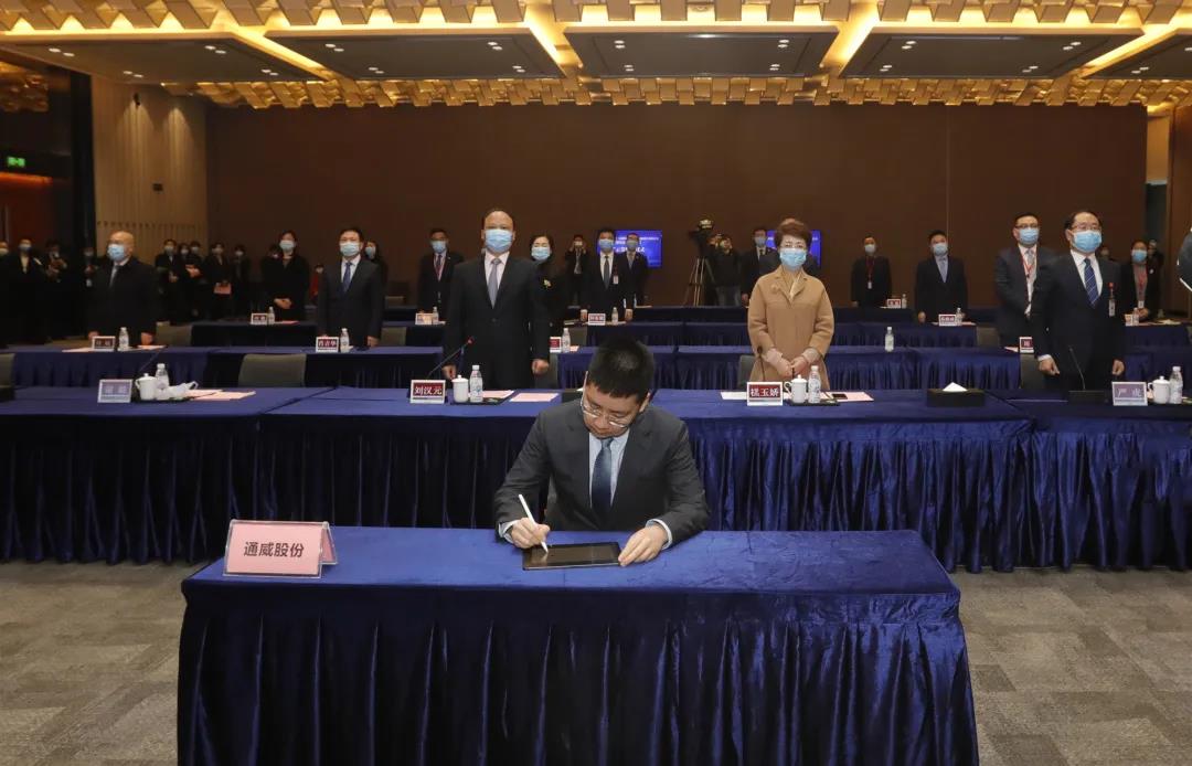 2月28日,通威股份与乐山市政府、五通桥区政府以“云签约”方式正式签订《高纯晶硅投资协议书》,宣布永祥乐山高纯晶硅二期项目正式落户乐山市五通桥区。乐山市委书记彭琳,市委副书记、市长张彤,市委副书记曾洪扬,市政府副市长廖克全,五通桥区委书记张国清,区委副书记、区长李良在乐山出席并见证项目签约,通威集团董事局刘汉元主席,通威集团禚玉娇总裁,通威股份董事长谢毅,通威股份副董事长严虎,通威股份董事、永祥股份董事长兼总经理段雍,通威股份总裁郭异忠,永祥股份财务总监袁仕华,永祥股份副总经理兼永祥新能源总经理李斌在成都通威国际中心出席签约仪式。