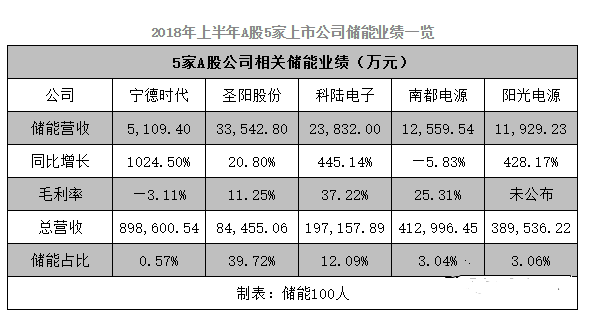 虽然宁德时代自成立伊始就将储能作为公司的战略之一,但与动力电池耀眼的业绩相比,宁德时代在2018年以前,其储能业务的表现并不突出。不仅在海外储能市场与比亚迪等同行相去甚远,在国内市场,从已披露的A股5家公司业绩来看,宁德时代不及其它4家,还处于追赶之中。
