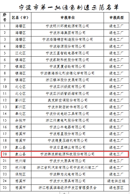 近日,宁波市经济和信息化局公布第一批绿色制造名单,其中绿色工厂23家、绿色园区1个、绿色供应链1条。宁波锦浪新能源科技股份有限公司榜上有名,荣获“绿色工厂”称号,再次彰显了锦浪绿色制造的水平和实力。据悉,象山县仅有2家单位入选。