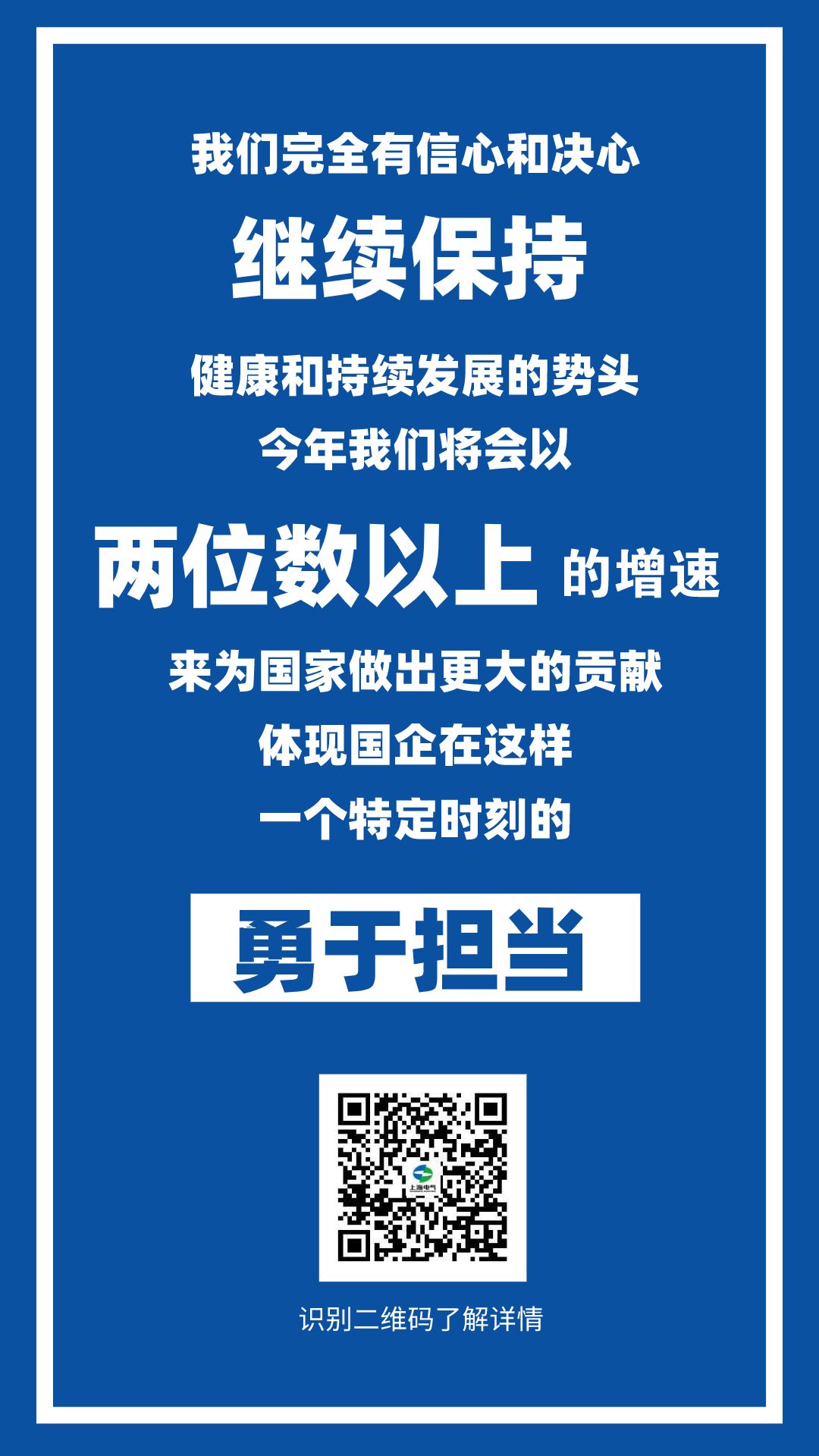 “我们完全有信心和决心继续保持健康和持续发展的势头,今年我们将会以两位数以上的增速来为国家做出更大的贡献,体现国企在这样一个特定时刻的勇于担当。”