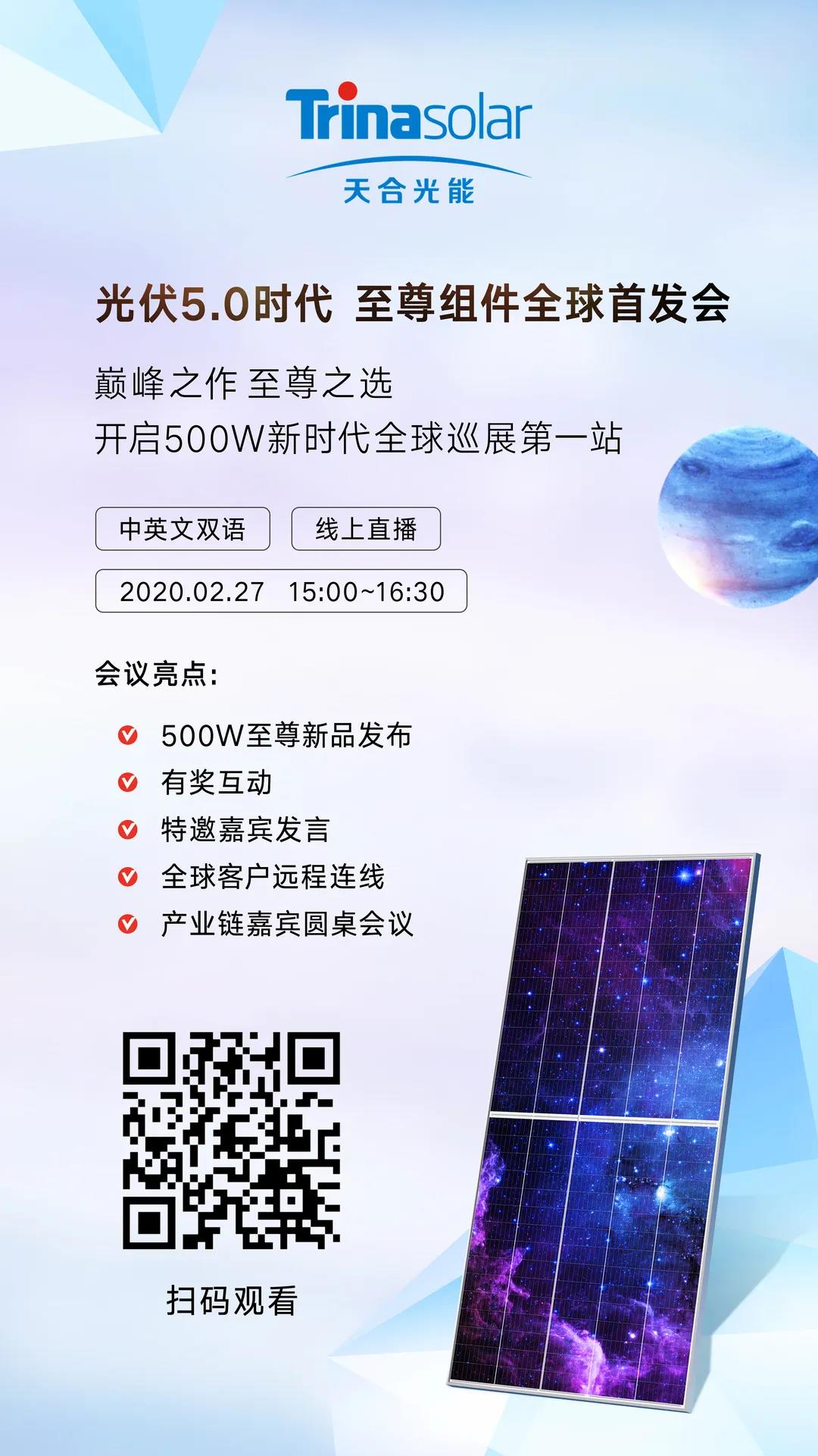 线上巅峰之作!天合光能至尊组件全球首发!