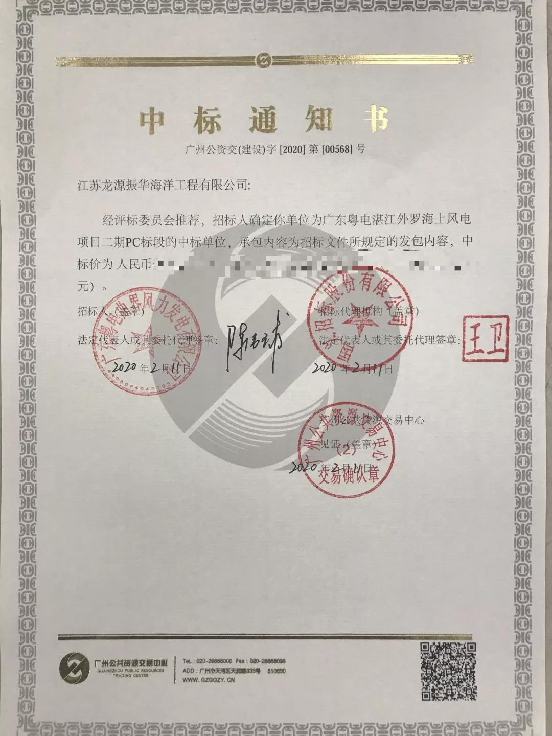 龙源振华“喜中”广东粤电湛江外罗海上风电项目二期PC标段项目