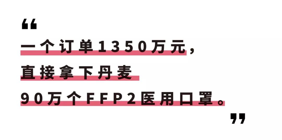 “就在前天晚上,我们的全球采购团队紧急寻找到一家丹麦的知名防护产品供应商还有90万个欧标FFP2(N95级别)医用口罩,立即出资1350万元拿下全部库存,2月20日前就能运抵国内。”张雷说。